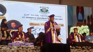 ಬೆಂಗಳೂರು : ಸೇಂಟ್ ಜೋಸೆಫ್ ವಿಶ್ವವಿದ್ಯಾಲಯದ ದ್ವಿತೀಯ ಪದವಿ ಪ್ರದಾನ ಸಮಾರಂಭ ಶನಿವಾರ ನಡೆಯಿತು. ಮೊದಲಿಗೆ ರ್ಯಾಂಕ್ ಹೋಲ್ಡರ್ಸ್ ಮತ್ತು ವಿಶೇಷ ಪ್ರಶಸ್ತಿ ವಿಜೇತರ ಮೆರವಣಿಗೆಯೊಂದಿಗೆ ಕಾರ್ಯಕ್ರಮ ಆರಂಭವಾಯಿತು.