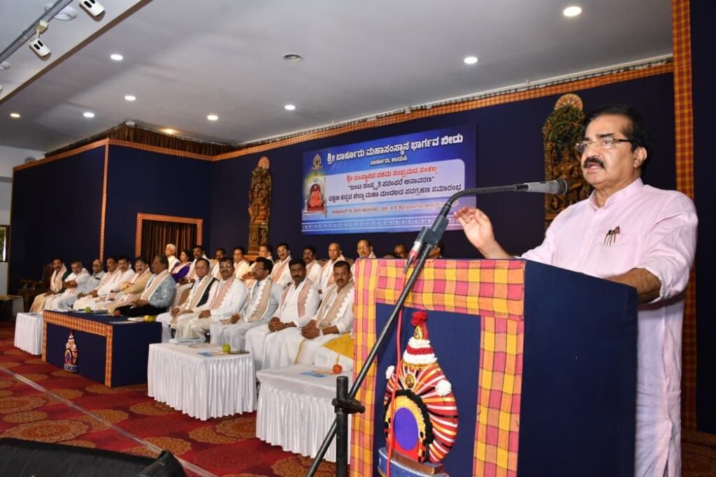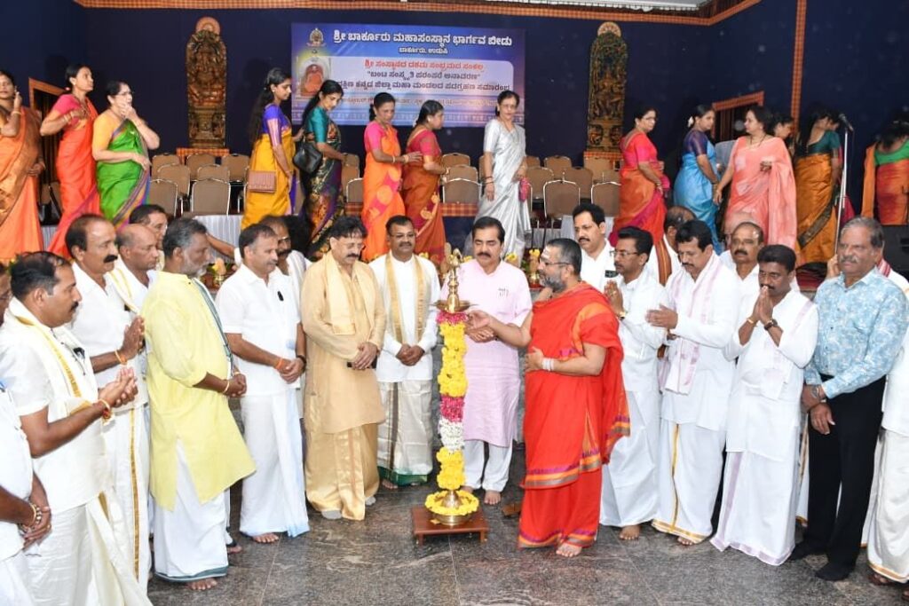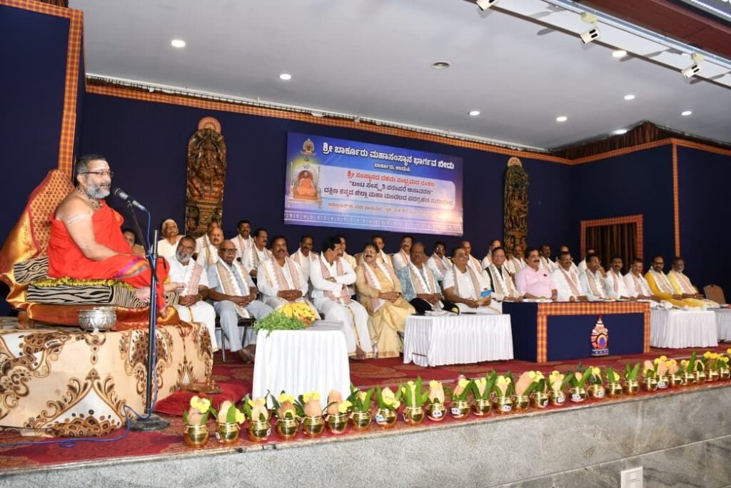 ಆಡ್ಯಾರ್ ಗಾರ್ಡನ್ನಲ್ಲಿರುವ ವಿ.ಕೆ.ಶೆಟ್ಟಿ ಸಭಾಂಗಣದಲ್ಲಿ ಶ್ರೀ ಬಾರ್ಕೂರು ಮಹಾಸಂಸ್ಥಾನ ಭಾರ್ಗವ ಬೀಡು ಶ್ರೀ ಸಂಸ್ಥಾನದ ದಶಮ ಸಂಭ್ರಮದ ಸಂಕಲ್ಪ ‘ಬಂಟ ಸಂಸ್ಕೃತಿ ಪರಂಪರೆ ಅನಾವರಣ’ ಹಾಗೂ ದಕ್ಷಿಣ ಕನ್ನಡ ಜಿಲ್ಲಾ ಮಹಾ ಮಂಡಲದ ಪದಗ್ರಹಣ ಸಮಾರಂಭದ ಸಾನಿಧ್ಯ ವಹಿಸಿ ಅವರು ಮಾತನಾಡಿದರು.