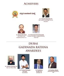 ಸಮಾಜ ಸೇವೆಯಲ್ಲಿ ತಮ್ಮನ್ನು ತಾವು ತೊಡಗಿಸಿಕೊಂಡಿರುವ ನಾಲ್ಕು ಮಂದಿ ಸಾಧಕರಾದ ಉದ್ಯಮಿ ಪ್ರಕಾಶ್ ಕುಂಪಲ,ಬಿ.ಎಂ ಗ್ರೂಪ್ ಮತ್ತು ರೇಡಿಯೋ ಜಿಲ್ಲಿನ ಆಡಳಿತ ನಿರ್ದೇಶಕರಾದ ಡಾ.ಕನಕರಾಜ್, ಹೋಟೆಲ್ ಉದ್ಯಮಿ ಸಂದೀಪ್ ಶೆಟ್ಟಿ,ಮ್ಯಾಕ್ಸ್ ಕ್ಯಾರ್ ಕ್ಲಿನಿಕ್ ದುಬೈ ಆಡಳಿತ ನಿರ್ದೇಶಕರಾದ ಬಶೀರ್ ಕಿನ್ನಿಂಗಾರ್ ರವರನ್ನು “ಗಡಿನಾಡ ರತ್ನ -2025” ಪ್ರಶಸ್ತಿ ನೀಡಿ ಗೌರವಿಸಲಾಗುವುದು.