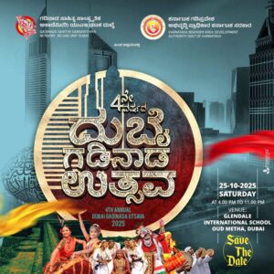 ದುಬೈ : ಗಡಿನಾಡ ಸಾಹಿತ್ಯ ಸಾಂಸ್ಕೃತಿಕ ಅಕಾಡೆಮಿ (ರಿ) ದುಬೈ ಘಟಕದ ನಾಲ್ಕನೇ ವರ್ಷದ ದುಬೈ “ಗಡಿನಾಡ ಉತ್ಸವ -2025” ಕಾರ್ಯಕ್ರಮವು ನಗರದ ಔದ್ ಮೇಥಾದ ಗ್ಲೆಂಡೇಲ್ ಅಂತಾರಾಷ್ಟ್ರೀಯ ಶಾಲೆಯ ಸಭಾಂಗಣದಲ್ಲಿ ಅಕ್ಟೋಬರ್ 25 ರಂದು ಸಂಜೆ 4 ರಾತ್ರಿ 11 ರವರೆಗೆ ನಡೆಯಲಿದೆ.