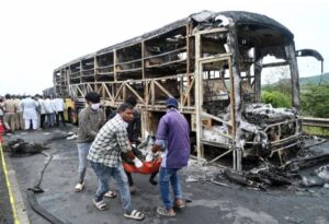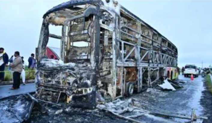 ಇಂದು ಮುಂಜಾನೆ ಕರ್ನೂಲ್ ಜಿಲ್ಲೆಯ ಚಿನ್ನಟೇಕುರು ಗ್ರಾಮದ ಬಳಿ ಹೈದರಾಬಾದ್ನಿಂದ ಬೆಂಗಳೂರಿಗೆ ಹೋಗುತ್ತಿದ್ದ ಐಷಾರಾಮಿ ಖಾಸಗಿ ಬಸ್ಗೆ ಬೆಂಕಿ ಹೊತ್ತಿಕೊಂಡ ಪರಿಣಾಮ 20ಕ್ಕೂ ಹೆಚ್ಚು ಪ್ರಯಾಣಿಕರು ಸುಟ್ಟು ಕರಕಲಾಗಿದ್ದು, ಹಲವರು ಗಾಯಗೊಂಡಿದ್ದಾರೆ ಎಂದು ವರದಿಯಾಗಿದೆ.