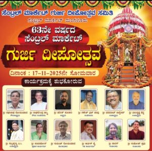ಮಂಗಳೂರು : ಶರವು ಶ್ರೀ ಮಹಾಗಣಪತಿ ದೇವರ 63ನೇ ವರ್ಷದ ದೀಪಾರಾಧನೆ ಉತ್ಸವ ” ಸೆಂಟ್ರಲ್ ಮಾರ್ಕೆಟ್ ಗುರ್ಜಿ “ಯನ್ನು ನವೆಂಬರ್ 17 ರಂದು ಸೆಂಟ್ರಲ್ ಮಾರ್ಕೆಟ್ ಎದುರುಗಡೆ ಆಚರಿಸಲಾಗುತ್ತದೆ.