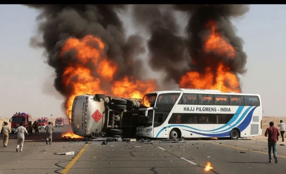 ಉಮ್ರಾ ಯಾತ್ರಿಕರನ್ನು ಕರೆದೊಯ್ಯುತ್ತಿದ್ದ ಬಸ್ ಮದೀನಾ ಬಳಿ ಡೀಸೆಲ್ ಟ್ಯಾಂಕರ್ಗೆ ಡಿಕ್ಕಿ ಹೊಡೆದ ಪರಿಣಾಮ 45 ಜನರು ಸಾವನ್ನಪ್ಪಿದ್ದು ಮತ್ತು ಆಸ್ಪತ್ರೆಯಲ್ಲಿ ಒಬ್ಬ ಯಾತ್ರಿ ಬದುಕುಳಿದಿದ್ದಾನೆ ಎಂದು ತಿಳಿದುಬಂದಿದೆ