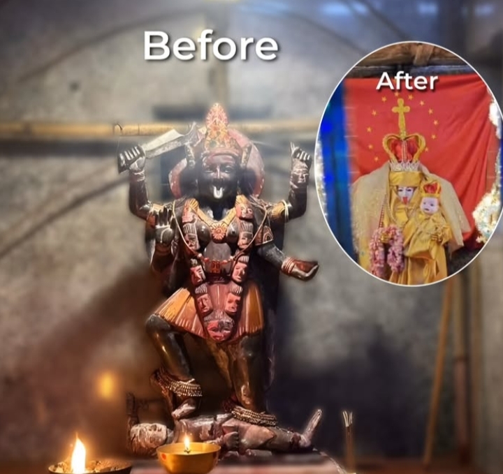 ಮುಂಬೈನ ದೇವಸ್ಥಾನವೊಂದರಲ್ಲಿ ಕಾಳಿ ದೇವಿಯ ವಿಗ್ರಹವನ್ನು ಮಾತೆ ಮೇರಿಯನ್ನು ಹೋಲುವಂತೆ ಅಲಂಕರಿಸಲಾಗಿತ್ತು. ಘಟನೆಗೆ ಸಂಬಂಧಿಸಿದಂತೆ ಅರ್ಚಕನನ್ನು ಬಂಧಿಸಲಾಗಿದ್ದು, ಧಾರ್ಮಿಕ ಭಾವನೆಗಳಿಗೆ ಧಕ್ಕೆ ತಂದ ಆರೋಪದಡಿಯಲ್ಲಿ ಪ್ರಕರಣ ದಾಖಲಿಸಲಾಗಿದೆ.