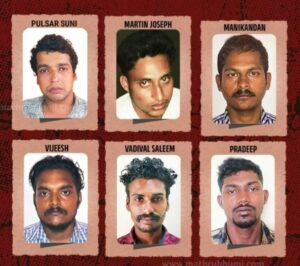 ಸಾಮೂಹಿಕ ಅತ್ಯಾಚಾರದ ಅಪರಾಧಕ್ಕಾಗಿ ಎರ್ನಾಕುಲಂ ಜಿಲ್ಲಾ ಮತ್ತು ಪ್ರಧಾನ ಸೆಷನ್ಸ್ ನ್ಯಾಯಾಲಯದ ನ್ಯಾಯಾಧೀಶೆ ಹನಿ ಎಂ.ವರ್ಗೀಸ್ ಅವರು ಪಲ್ಸರ್ ಸುನಿ ಎಂದೂ ಕರೆಯಲ್ಪಡುವ ಸುನಿಲ್ ಎನ್ಎಸ್, ಮಾರ್ಟಿನ್ ಆಂಟೋನಿ, ಮಣಿಕಂಠನ್ ಬಿ, ವಿಜೇಶ್ ವಿಪಿ, ಸಲೀಂ ಎಚ್ ಮತ್ತು ಪ್ರದೀಪ್ ಅವರಿಗೆ 20 ವರ್ಷಗಳ ಕಠಿಣ ಜೈಲು ಶಿಕ್ಷೆ ವಿಧಿಸಿದರು.