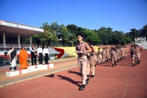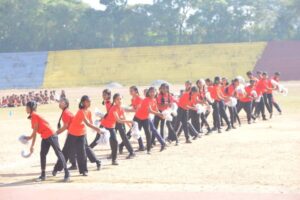 ಆಕರ್ಷಕ ಪಥ ಸಂಚಾಲನೆಯನ್ನು ನಾಲ್ಕು ತಂಡಗಳಾದ ಅಮೃತ ಮಯಿ, ಆನಂದಮಯಿ, ಚಿನ್ಮಯಿ, ಜ್ಯೋತಿರ್ಮಯಿಯವರು ನೆರವೇರಿಸಿದರು.