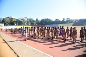 ಶಾಲಾ ನಾಯಕ ರಿಷಬ್ ಶೆಟ್ಟಿ,, ನಾಯಕಿ ಖುಷಿ ಶೇಟ್, ಕ್ರೀಡಾ ಮಂತ್ರಿ ಮಯಾಂಕ್, ಸಹ ಕ್ರೀಡಾ ಮಂತ್ರಿ ಅನುಷ್ಕಾ ಯಾದವ್ ಮತ್ತು NCC ಕೆಡೆಟ್ ಗಳು ಬ್ಯಾಂಡ್ ವಾದ್ಯ ಗಳ ಮೂಲಕ ಅತಿಥಿಗಳನ್ನು ಸ್ವಾಗತಿಸಿದರು.