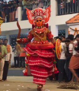 ಕಾಸರಗೋಡು : ನೀಲೇಶ್ವರದ ರೈಲ್ವೆ ರಸ್ತೆ ಮೇಲ್ಸೇತುವೆ ಬಳಿಯ ಪಲ್ಲಿಕ್ಕರ ವಿಷ್ಣುಮೂರ್ತಿ ದೇವಸ್ಥಾನದ ಉತ್ಸವದಲ್ಲಿ ಪೂಮಾರುತನ ದೇವರ ‘ವೆಳ್ಳಟ್ಟಂ’ ಆಚರಣೆ ವೇಳೆ ಈ ಘಟನೆ ನಡೆದಿದೆ.
