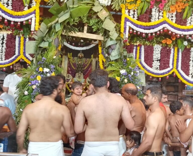 ಹರಕೆ ಸಲ್ಲಿಸಲ್ಪಡುವ ಮಕ್ಕಳನ್ನು ಜಳಕದ ಗುಂಡಿಯಲ್ಲಿ ಸ್ನಾನ ಮಾಡಿಸಿದ ಬಳಿಕ ಗರ್ಭಗುಡಿಯ ಮುಖ್ಯದ್ವಾರದಲ್ಲಿ ಮಕ್ಕಳನ್ನು ದೇವರಿಗೆ ಕಜಂಬು ಹರಕೆಯ ಮೂಲಕ ಸಮರ್ಪಿಸಲಾಯಿತು. ಆ ನಂತರ ದೇವಸ್ಥಾನದ ನಾಲ್ಕು ಮೂಲೆಗಳಲ್ಲಿ ಕುಳಿತಿರುವ ‘ನಾಲ್ಪೊಲು’ ಎಂಬ ದೈವಮಾನಿಗಳಿಗೆ ಮುಷ್ಟಿ ನಾಣ್ಯ ಹರಕೆ ಸಲ್ಲಿಸಲಾಯಿತು.