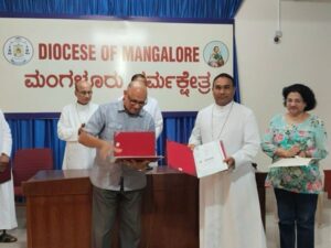 ಮಂಗಳೂರು : ಪ್ರಸಿದ್ಧ ಅನಿವಾಸಿ ಉದ್ಯಮಿ ಮತ್ತು ಮಹಾದಾನಿ ಶ್ರೀ ಮೈಕಲ್ ಡಿ’ಸೋಜಾ ಅವರ ಕಾರವಾರ ಮತ್ತು ಗುಲ್ಬರ್ಗಾ ಜೋಡಿ ಧರ್ಮಪ್ರಾಂತ್ಯಗಳ ಸಮುದಾಯಗಳನ್ನು ಸಮರ್ಥಗೊಳಿಸುವ ಗುರಿಯುಳ್ಳ ಮಹತ್ವಾಕಾಂಕ್ಷಿ ವಿಶನ್ 2030 ಕಾರ್ಯಯೋಜನೆಗೆ ಮಂಗಳೂರು ಧರ್ಮಕ್ಷೇತ್ರದ, ಧರ್ಮಾಧ್ಯಕ್ಷರ ನಿವಾಸದಲ್ಲಿ ತಿಳುವಳಿಕೆ ಒಡಂಬಡಿಕೆಗೆ (MoU) ಸಹಿ ಮಾಡುವುದರ ಮೂಲಕ ಅಧಿಕೃತವಾಗಿ ಚಾಲನೆ ನೀಡಲಾಯಿತು.