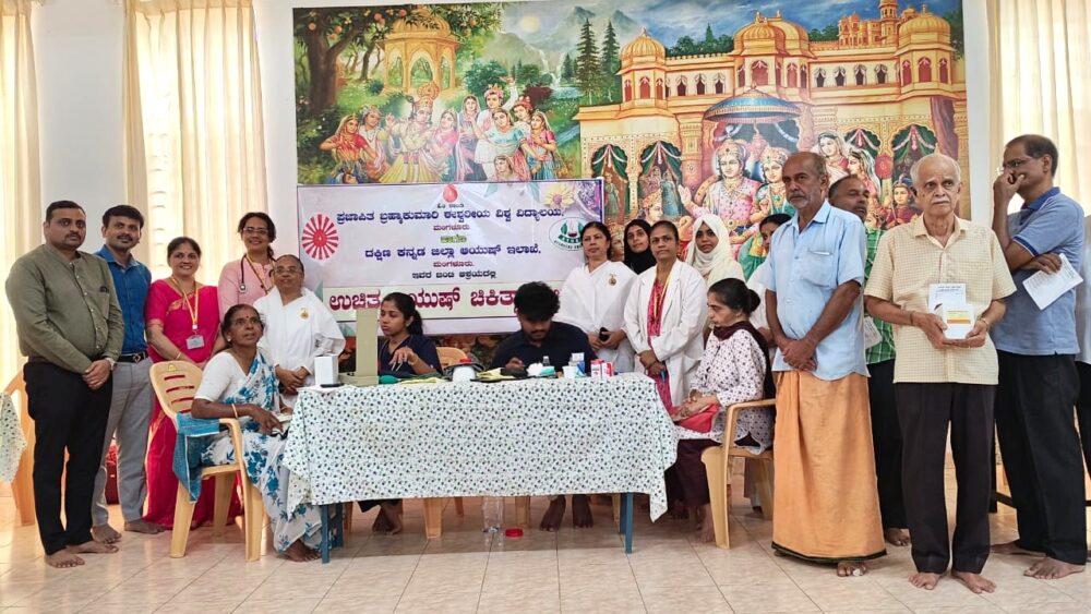 ಮಂಗಳೂರು :ಪ್ರಜಾಪಿತ ಬ್ರಹ್ಮಕುಮಾರೀಸ್ ಈಶ್ವರೀಯ ವಿಶ್ವವಿದ್ಯಾಲಯ ಮಂಗಳೂರು ಹಾಗೂ ದಕ್ಷಿಣ ಕನ್ನಡ ಜಿಲ್ಲಾ ಆಯುಷ್ ಇಲಾಖೆ ಮಂಗಳೂರು ಇವರ ಸಂಯುಕ್ತ ಆಶ್ರಯದಲ್ಲಿ ಡಿಸೆಂಬರ್ 21, 2025ರಂದು ಆಯೋಜಿಸಲಾಗಿದ್ದ ಉಚಿತ ಆಯುಷ್ ಚಿಕಿತ್ಸಾ ಶಿಬಿರ ಯಶಸ್ವಿಯಾಗಿ ನಡೆಯಿತು.