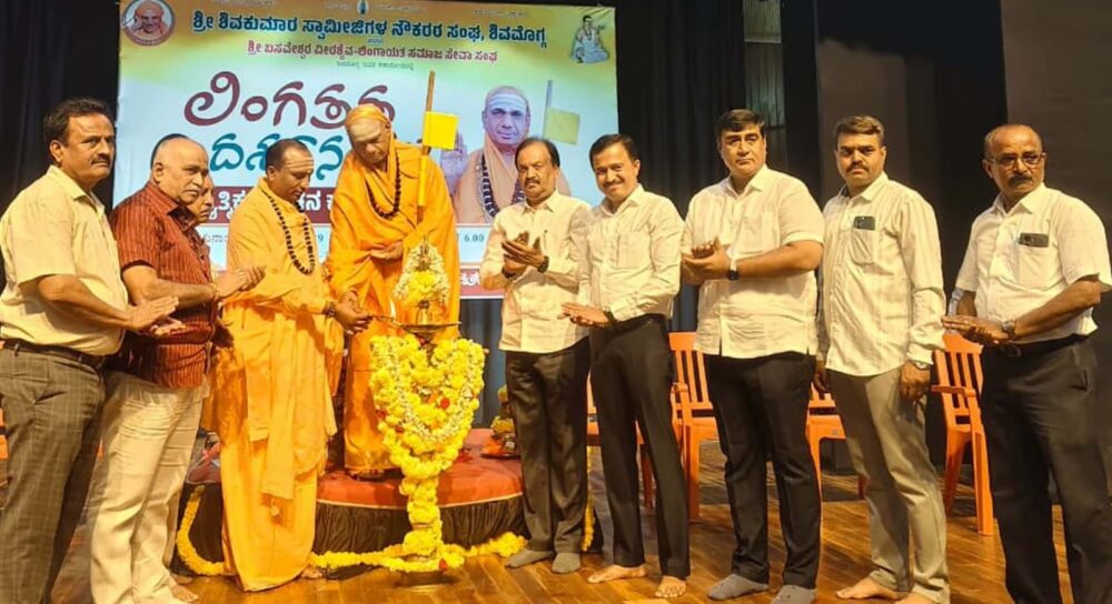 ಶಿವಮೊಗ್ಗ : ನಿತ್ಯದಲ್ಲಿ ನಡೆಸುವ ಇಷ್ಟಲಿಂಗಾರ್ಚನೆಯ ಮೂಲಕ ಸಾಧ್ಯವಾಗುವ ಪ್ರಾಣಲಿಂಗ ಮತ್ತು ಭಾವಲಿಂಗಗಳ ಅನುಸಂಧಾನದ ಮಹಾಬೆಳಗಿನಲ್ಲಿ ತನ್ನನ್ನೇ ತಾನು ಲಿಂಗ ರೂಪದಲ್ಲಿ ಭಾವಿಸಿ ಲಿಂಗಾಂಗ ಸಾಮರಸ್ಯದ ಸ್ಥಿತಿಯನ್ನು ಹೊಂದುವುದೇ ಲಿಂಗತತ್ವ ದರ್ಶನ ಎಂದು ವೀರಶೈವ ಧರ್ಮದ ಪಂಚಪೀಠಗಳಲ್ಲಿ ಒಂದಾಗಿರುವ ಕಾಶಿ ಜ್ಞಾನ ಪೀಠದ ಹಿರಿಯ ಜಗದ್ಗುರು ಡಾ. ಚಂದ್ರಶೇಖರ ಶಿವಾಚಾರ್ಯ ಭಗವತ್ಪಾದರು ನುಡಿದರು.