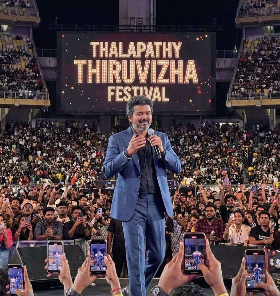 ‘ತಲಪತಿ ತಿರುವಿಳ’ ಎಂದು ಕರೆಯಲ್ಪಡುವ ಈ 5 ರಿಂದ 6 ಗಂಟೆಗಳ ಕಾಲ ನಡೆದ ಈ ಅದ್ದೂರಿ ಕಾರ್ಯಕ್ರಮವು ವಿಜಯ್ ಅವರ ರಾಜಕೀಯ ಇನ್ನಿಂಗ್ಸ್ಗೆ ಮೊದಲು ಅವರ ಸಿನಿಮೀಯ ವಿದಾಯವನ್ನು ಸೂಚಿಸಿತು.
