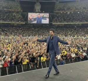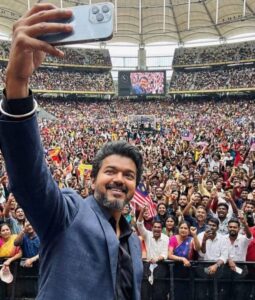 ಮಲೆಷ್ಯಾ : ತಮಿಳು ನಟ-ರಾಜಕಾರಣಿ ವಿಜಯ್ ಅವರು ಶನಿವಾರ ತಮ್ಮ ಮುಂಬರುವ ಚಿತ್ರ “ಜನ ನಾಯಗನ್”ನ ಬೃಹತ್ ಆಡಿಯೋ ಬಿಡುಗಡೆ ಸಮಾರಂಭದಲ್ಲಿ ಚಲನಚಿತ್ರೋದ್ಯಮದಿಂದ ತಮ್ಮ ಅಂತಿಮ ನಿರ್ಗಮನವನ್ನು ಸೂಚಿಸಿದರು, ಸುಮಾರು 1ಲಕ್ಷಕ್ಕೂ ಅಧಿಕ ಮಂದಿ ಸೇರಿದ್ದ ಅಭಿಮಾನಿಗಳ ಎದುರು ವಿಜಯ್ ಜನರ ಸೇವೆಗಾಗಿ ಸಿನೆಮಾವನ್ನು ತ್ಯಜಿಸುತ್ತಿದ್ದೇನೆ ಎಂದು ಹೇಳಿದರು