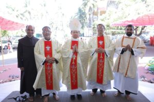 ಸಂಜೆ 5:00 ಗಂಟೆಗೆ ಇಂಗ್ಲಿಷ್ನಲ್ಲಿ ನಡೆದ ಬಲಿಪೂಜೆಯ ನೇತೃತ್ವವನ್ನು ತಪೋವನದ ಕಾರ್ಮೆಲೈಟ್ ನೊವಿಶಿಯೇಟ್ನ ಸುಪೀರಿಯರ್ ವಂದನೀಯ ಜೋಸೆಫ್ ಡಿಸೋಜಾ (ಒಸಿಡಿ) ವಹಿಸಿದ್ದರು. ಸಂಜೆ 6:00 ಗಂಟೆಯ ಬಲಿಪೂಜೆಯನ್ನು ಕ್ಯಾಥೋಲಿಕ್ ಶಿಕ್ಷಣ ಮಂಡಳಿಯ ನಿರ್ದೇಶಕ ವಂದನೀಯ ಪ್ರವೀಣ್ ಲಿಯೋ ಲಸ್ರಾದೊ ನೆರವೇರಿಸಿದರು. ದಿನದ ಕೊನೆಯ ಬಲಿಪೂಜೆಯನ್ನು ರಾತ್ರಿ 7:45ಕ್ಕೆ ಕನ್ನಡದಲ್ಲಿ ಬೆಂಗಳೂರಿನ ವಂದನೀಯ ಅಲ್ಫೋನ್ಸ್ ಬ್ರಿಟ್ಟೋ (ಎಸ್ವಿಡಿ) ನೆರವೇರಿಸಿದರು.