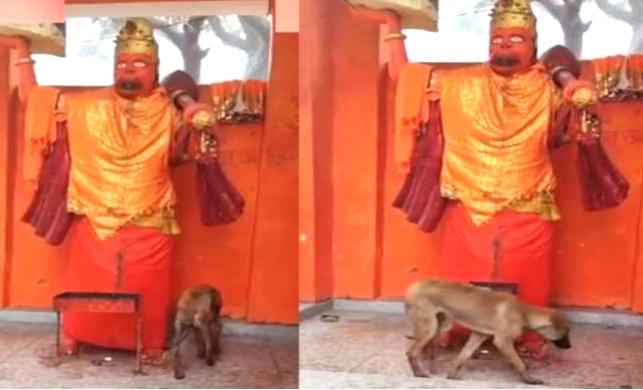 ಉತ್ತರ ಪ್ರದೇಶ : ಬಿಜ್ನೋರ್ ಜಿಲ್ಲೆಯಲ್ಲಿ ಕಳೆದ ಮೂರು ದಿನಗಳಿಂದ ನಾಯಿಯೊಂದು ದೇವಸ್ಥಾನದೊಳಗೆ ಹನುಮಾನ್ ಮತ್ತು ಮಾ ದುರ್ಗಾ ದೇವರ ವಿಗ್ರಹಗಳನ್ನು ನಿರಂತರವಾಗಿ ಸುತ್ತುತ್ತಿರುವ ಅಚ್ಚರಿಯ ಘಟನೆ ಬೆಳಕಿಗೆ ಬಂದಿದೆ.