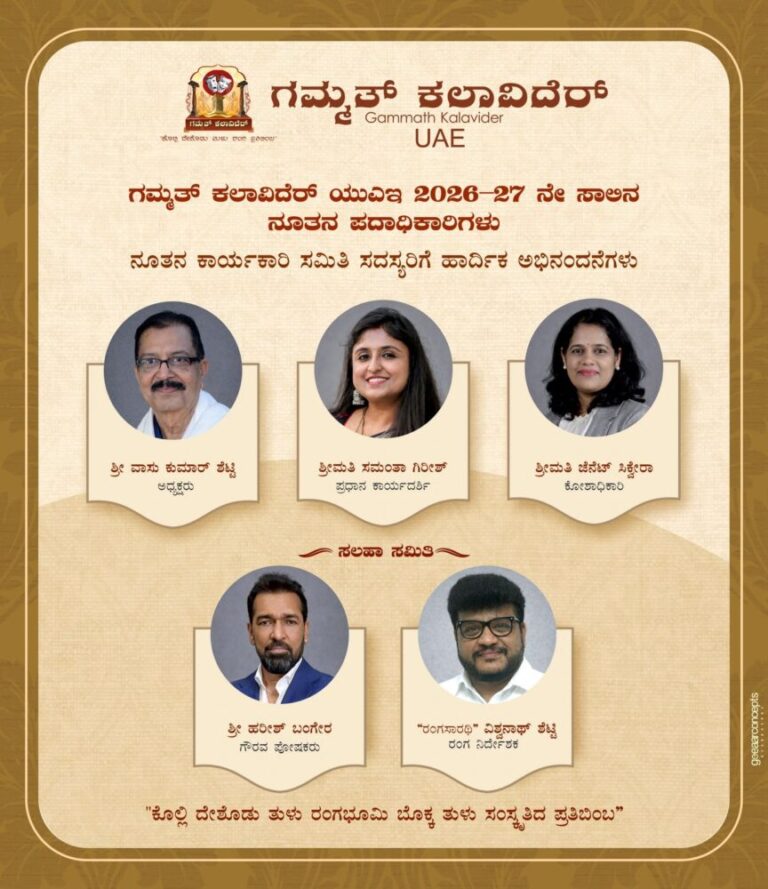 ಗಮ್ಮತ್ ಕಲಾವಿದರ್ ಯುಎಇ ತಮ್ಮ ಮುಂದಿನ ಕಾರ್ಯಕ್ರಮಗಳು ಮತ್ತು ಯೋಜನೆಗಳಿಗೆ ಬಲ ತುಂಬುವ ಉದ್ದೇಶದಿಂದ, 2026–27 ಅವಧಿಯ ನೂತನ ಕಾರ್ಯಕಾರಿ ಸಮಿತಿಯನ್ನು 18 ಜನವರಿ 2026 ರಂದು ದುಬೈಯ ಬರ್ ದುಬೈಯಲ್ಲಿರುವ ಗ್ರ್ಯಾಂಡ್ ಎಕ್ಸೆಲ್ಸಿಯರ್ ಹೋಟೆಲ್ನಲ್ಲಿ ನಡೆದ ವಾರ್ಷಿಕ ಸಭೆಯಲ್ಲಿ ರಚಿಸಲಾಯಿತು.