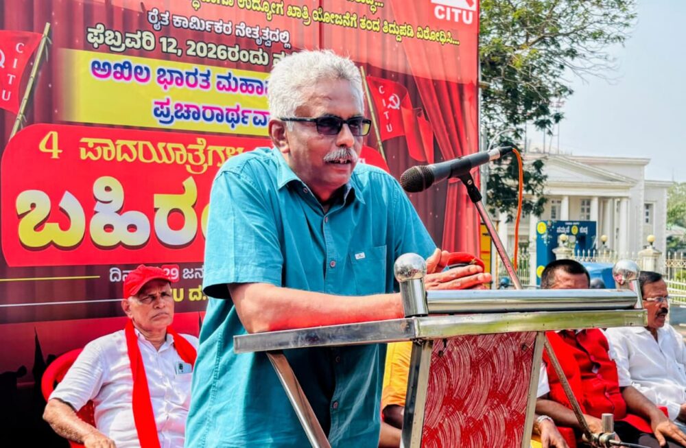 ಕಾರ್ಮಿಕ ಸಂಹಿತೆಗಳ ವಿರುದ್ಧ ಜನಜಾಗೃತಿ ಮೂಡಿಸುವ ಸಲುವಾಗಿ ಕಳೆದ 4 ದಿನಗಳಿಂದ ದ.ಕ.ಜಿಲ್ಲೆಯಾದ್ಯಂತ ಸಂಚರಿಸಿದ ಪಾದಯಾತ್ರೆಗಳು ಇಂದು ಮಂಗಳೂರಿನ ಹೃದಯಭಾಗದಲ್ಲಿ ಸಮಾಪನಗೊಂಡಿದ್ದು,ಅದರ ಭಾಗವಾಗಿ ನಡೆದ ಬಹಿರಂಗ ಸಭೆಯನ್ನು ಉದ್ದೇಶಿಸಿ ಮಾತನಾಡುತ್ತಾ ಅವರು,ಈ ಮಾತುಗಳನ್ನು ಹೇಳಿದರು.