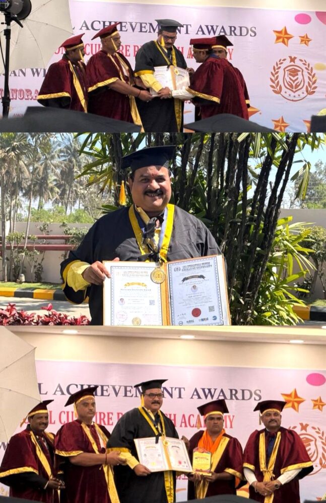 ಮಂಗಳೂರು : ಜ್ಯೋತಿಷ್ಯ ಶಾಸ್ತ್ರ ಮತ್ತು ಸಮಾಜ ಸೇವೆಗಾಗಿ ಸಿ.ಕೆ.ನಾಗೇಂದ್ರ ಭಾರದ್ವಾಜ್ ಅವರಿಗೆ ಗೌರವ ಡಾಕ್ಟರೇಟ್ ಪ್ರದಾನ ಮಾಡಲಾಗಿದೆ.