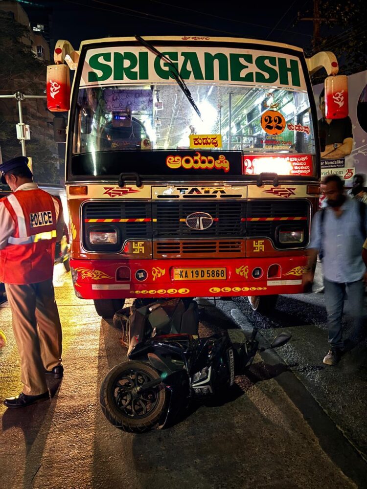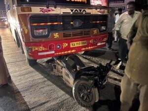 ಮಂಗಳೂರು, ಫೆ.4: ನಗರದ ನಂತೂರು ವೃತ್ತದ ಬಳಿ ನಿನ್ನೆ ರಾತ್ರಿ ಸುಮಾರು 8 ಗಂಟೆಗೆ ಸ್ಕೂಟರ್ ಗೆ ಖಾಸಗಿ ಬಸ್ ಡಿಕ್ಕಿ ಹೊಡೆದು ಹಿಂಬದಿ ಸವಾರೆಯ ಮೇಲೆ ಬಸ್ ಹರಿದು ಆಕೆ ಸ್ಥಳದಲ್ಲೇ ಮೃತಪಟ್ಟ ಘಟನೆ ನಡೆದಿದೆ.