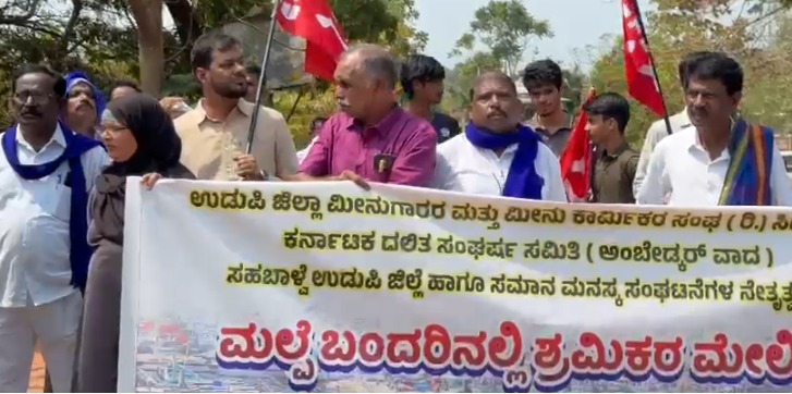 ಉಡುಪಿ: ಮಲ್ಪೆ ಬಂದರಿನಲ್ಲಿ ಶ್ರಮಿಕರ ಮೇಲಿನ ಗೂಂಡಾಗಿರಿ ಖಂಡಿಸಿ ಸೆಂಟರ್ ಆಫ್ ಇಂಡಿಯನ್ ಟ್ರೇಡ್ ಯೂನಿಯನ್ಸ್, ಕರ್ನಾಟಕ ದಲಿತ ಸಂಘರ್ಷ ಸಮಿತಿ (ಅಂಬೇಡ್ಕರ್ ವಾದ), ಸಹಬಾಳ್ವೆ ಉಡುಪಿ ಜಿಲ್ಲೆ ಹಾಗೂ ಸಮಾನ ಮನಸ್ಕ ಸಂಘಟನೆಗಳ ನೇತೃತ್ವದಲ್ಲಿ ಬುಧವಾರ ಅಜ್ಜರಕಾಡಿನ ಹುತಾತ್ಮ ಸ್ಮಾರಕದ ಬಳಿ ಪ್ರತಿಭಟನೆ ನಡೆಸಿದರು.